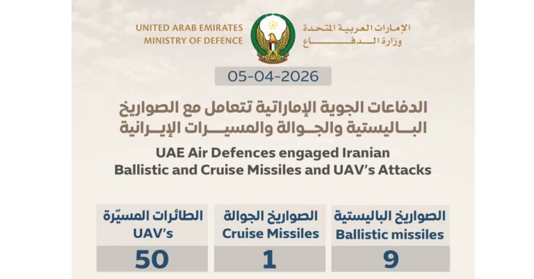 ഇറാനിൽ നിന്ന് ഇന്ന് വന്ന 23 ബാലിസ്റ്റിക് മിസൈലുകളും, 56 യുഎവികളും നിർവീര്യമാക്കിയതായി യുഎഇ പ്രതിരോധമന്ത്രാലയം Read More » April 4, 2026 No Comments